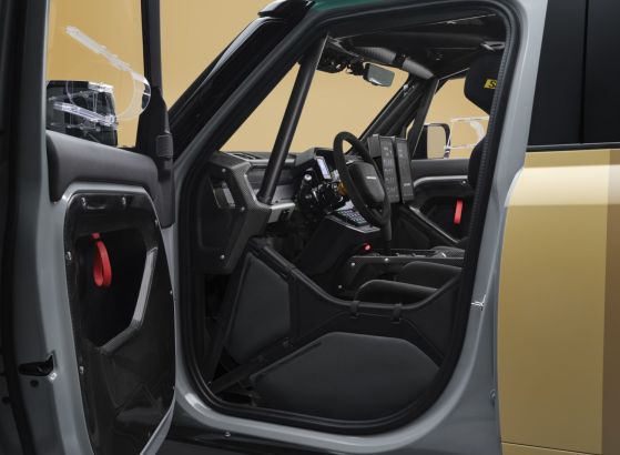 Електрониката разчита на специално ECU за моторспорт, с нов режим Flight, който регулира въртящия момент при скокове, за да защити трансмисията. Интериорът включва FIA седалки с шестточкови колани, рали-рейд навигация, отделения за екипировка за оцеляване и вградени хидравлични крикове. „В пустинята трябва да се адаптираш на всеки километър“, заключава Сара Прайс.